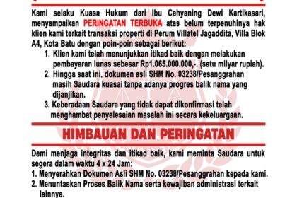 MALANG – Polemik mengenai tata kelola objek wisata di perbatasan Kabupaten Malang dan Lumajang kini memasuki babak baru. Kantor Hukum Law Office DLA (Didik Lestariyono) secara resmi merilis pernyataan...