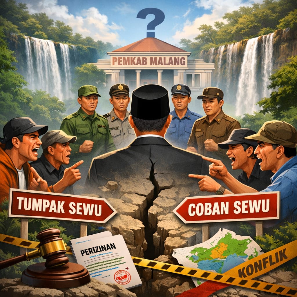 GeloraNews.co.id, MALANG – Polemik antara pengelola wisata Tumpak Sewu dan Coban Sewu hingga kini masih belum menemukan titik temu. Meski telah dilakukan pertemuan yang melibatkan unsur TNI, Polri, perangkat desa, BUMDes, serta instansi terkait, belum ada keputusan final yang secara resmi disepakati oleh kedua belah pihak.