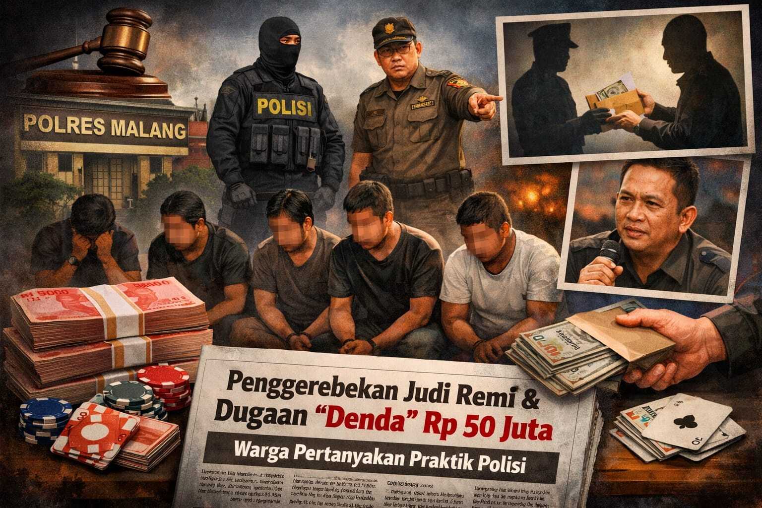 Malang – Penggerebekan lima warga yang sedang bermain kartu remi di Kampung Kalongan, Desa Peniwen, Kecamatan Kromengan, Kabupaten Malang, memicu polemik di tengah masyarakat. Pasalnya, selain sempat dibawa ke kantor Polres Malang, kelima warga tersebut disebut-sebut telah dibebaskan setelah adanya pembayaran sejumlah uang yang diduga mencapai Rp50 juta.