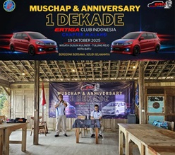Komunitas Ertiga Club Indonesia (ERCI) Chapter Malang menandai perjalanan 10 tahun kebersamaan dengan sebuah perhelatan besar: Muschap & Anniversary Satu Dekade. Acara digelar pada Minggu, 19 Oktober 2025, di kawasan Dusun Wisata Kuliner Batu, menghadirkan puluhan member yang memenuhi area acara sejak pukul 09.00 WIB.