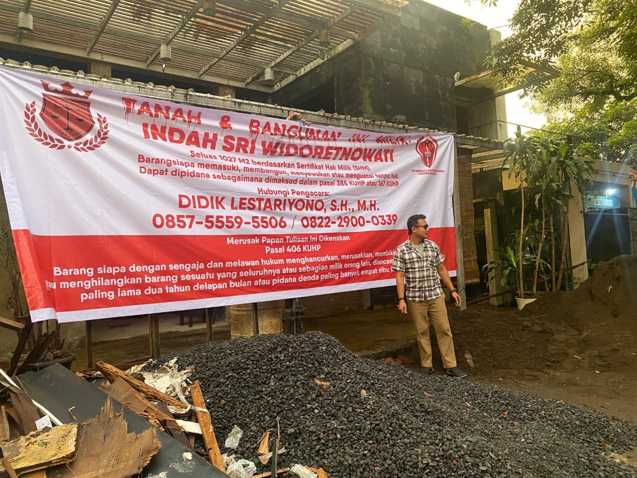 Pengacara Didik Lestariyono, S.H., M.H., menyebut penguasaan dan pembongkaran bangunan tersebut diduga dilakukan tanpa persetujuan pemilik sah. Ia menduga ada pihak yang berpura-pura menjadi kliennya dengan menggunakan identitas palsu, sehingga seolah-olah memiliki kewenangan hukum untuk menyewakan objek tersebut.