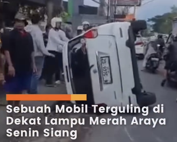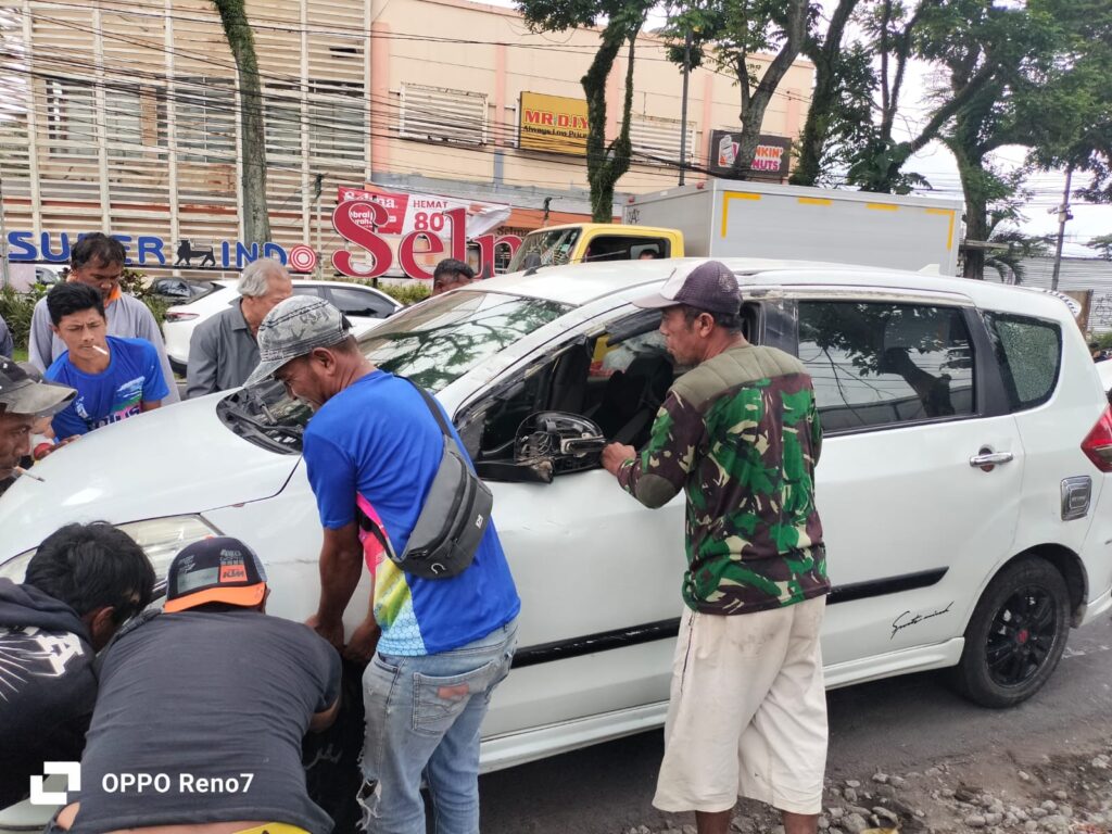 MALANG – Insiden kecelakaan lalu lintas terjadi di kawasan jalan protokol depan Plaza Araya, Kota Malang, pada Selasa (22/12/2025). Sebuah mobil Suzuki Ertiga berwarna putih mengalami kerusakan parah hingga terguling ke kiri setelah terlibat kontak dengan kendaraan lain di jalur menuju arah Surabaya.