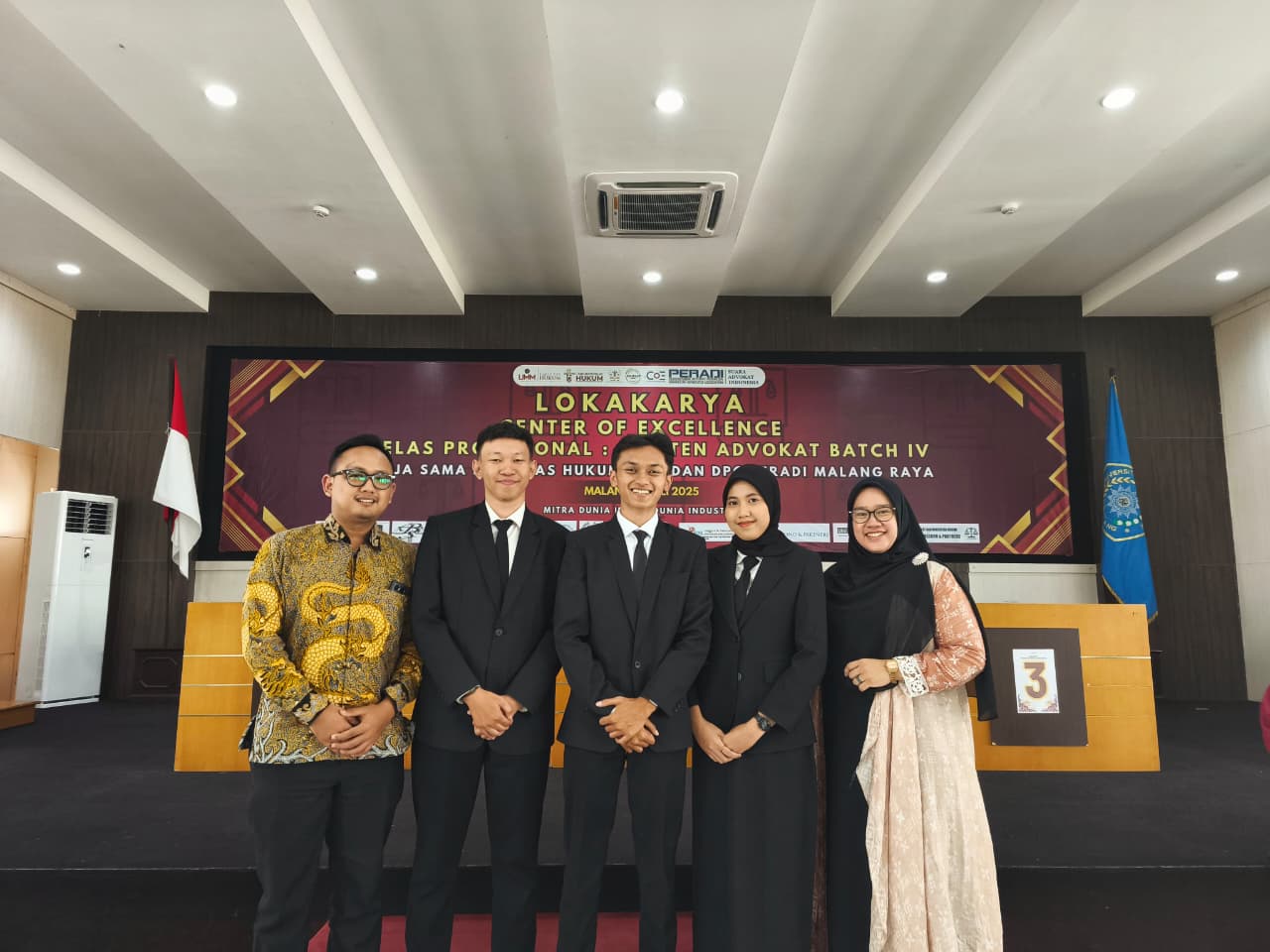 Malang — Program Center of Excellence (CoE) Kelas Profesional Asisten Advokat Fakultas Hukum Universitas Muhammadiyah Malang kembali mencatat capaian penting melalui selesainya magang profesional tiga mahasiswanya di Kantor Advokat Didik Lestariyono & Associates. Selama satu tahun penuh, sejak Februari hingga Desember 2025, Prafirsta Intan Banuartha, Zica Maulana Putra, dan M. Filza Fadillah terjun langsung dalam praktik hukum dan mendapatkan pengalaman substantif terkait dinamika penanganan perkara.