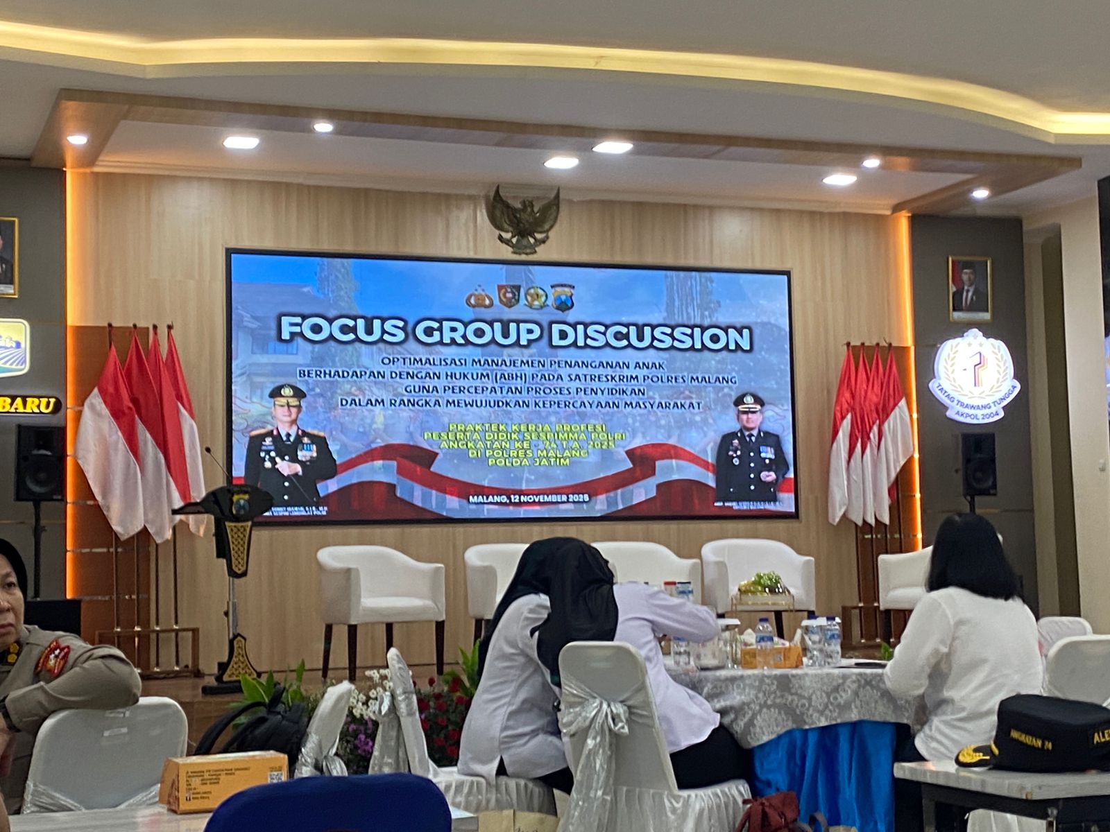 FGD ini menjadi bagian dari praktik kerja profesi peserta didik Sekolah Staf dan Pimpinan Menengah (Sespimmen) Polri angkatan ke-64 tahun 2024 di wilayah hukum Polda Jawa Timur, yang bertujuan memperkuat sinergi penegakan hukum yang berkeadilan dan berorientasi pada kepentingan terbaik bagi anak.