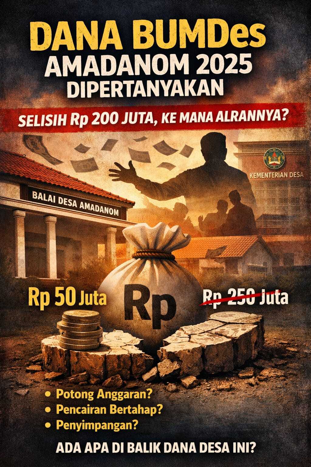 Hingga berita ini diterbitkan, Pemerintah Desa Amadanom belum menyampaikan klarifikasi tertulis terkait perbedaan nominal tersebut. Redaksi telah berupaya meminta konfirmasi guna memperoleh penjelasan resmi.