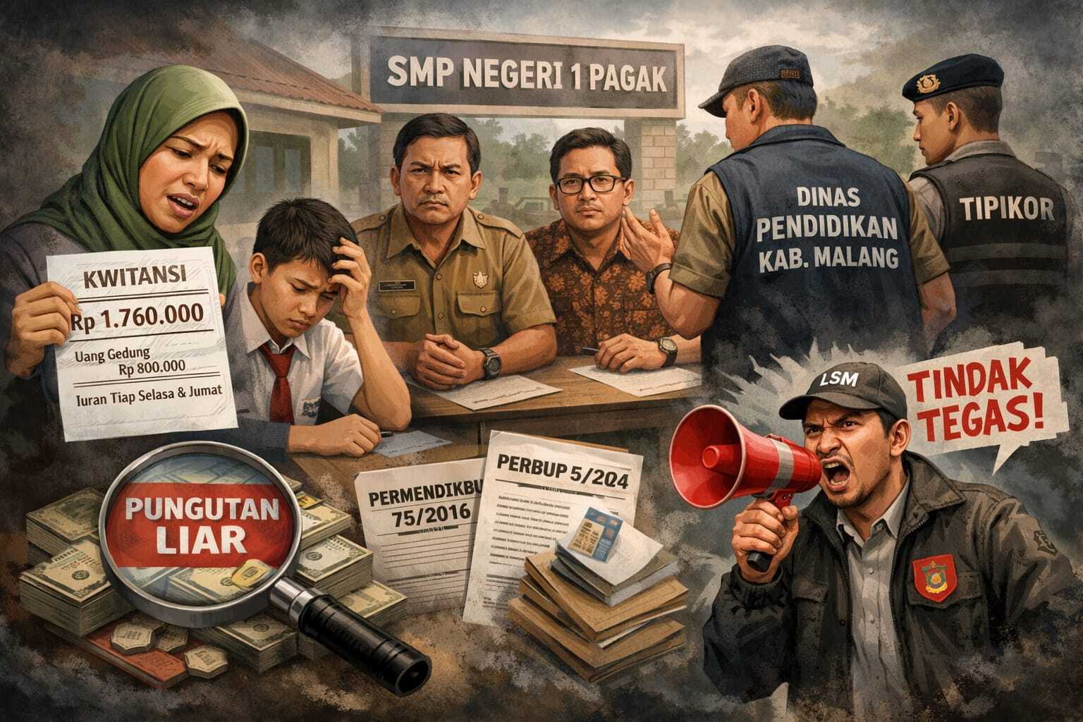 MALANG – Polemik dugaan pungutan di SMP Negeri 1 Pagak kembali menjadi sorotan publik. Viral beredarnya kwitansi pembayaran sebesar Rp 1.760.000 yang disebut sebagai sumbangan dari wali murid memicu berbagai reaksi. Alih-alih meredam polemik, klarifikasi yang disampaikan kepala sekolah dan komite melalui sejumlah media online justru dinilai semakin memperkuat dugaan adanya pungutan di sekolah negeri tersebut.